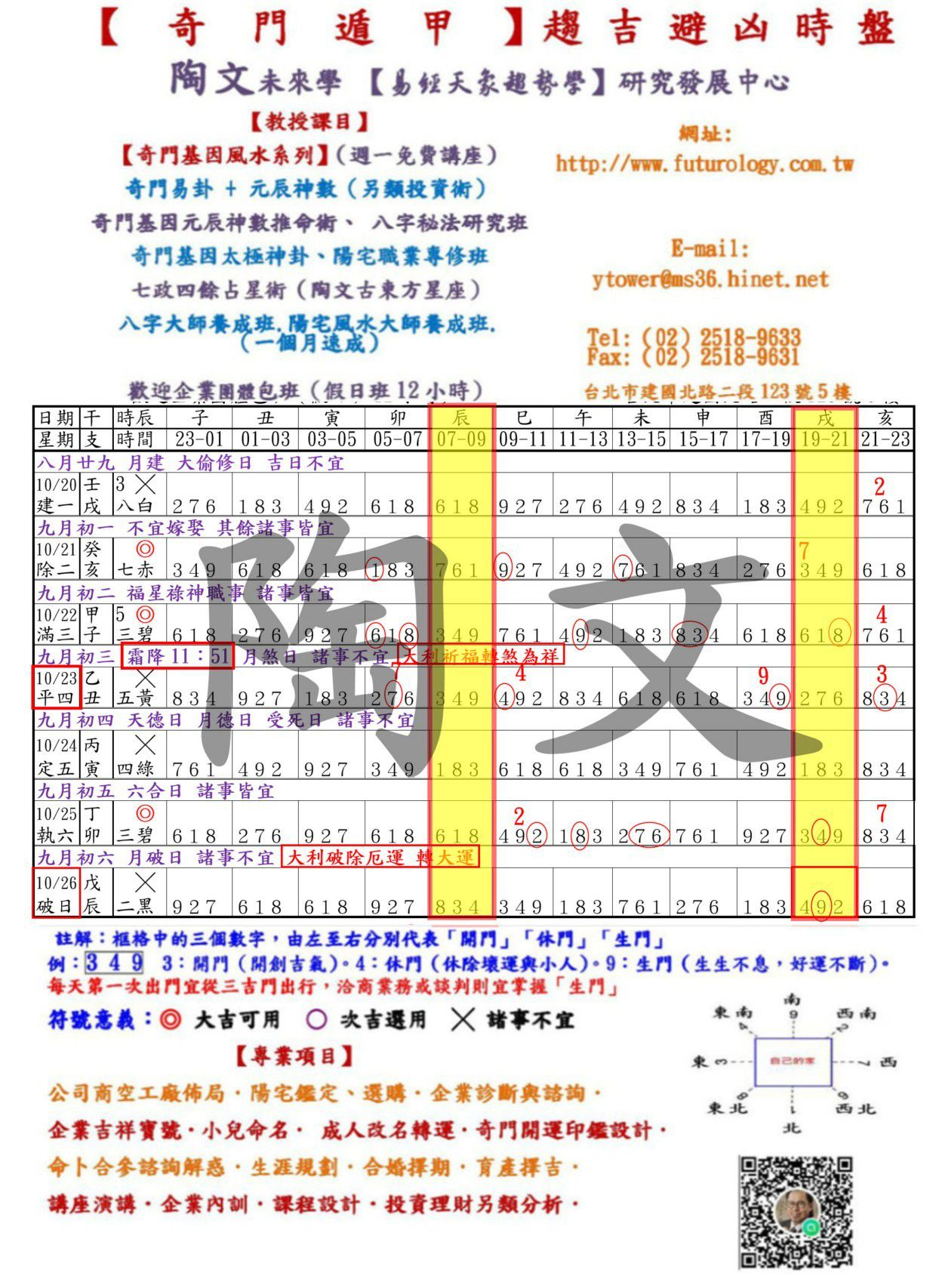 其餘時間的運用與風水開運布局,請自行參考「陶文未來學官網」【奇門遁甲】時盤。