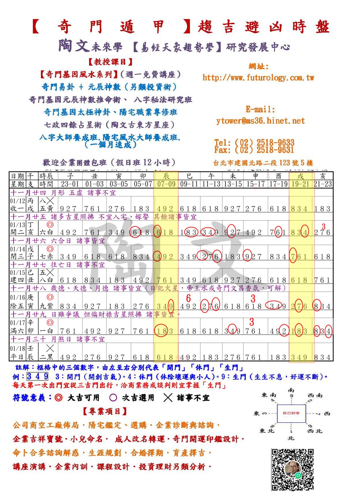 其餘時間的運用與風水開運布局,請自行參考「陶文未來學官網」【奇門遁甲】時盤。