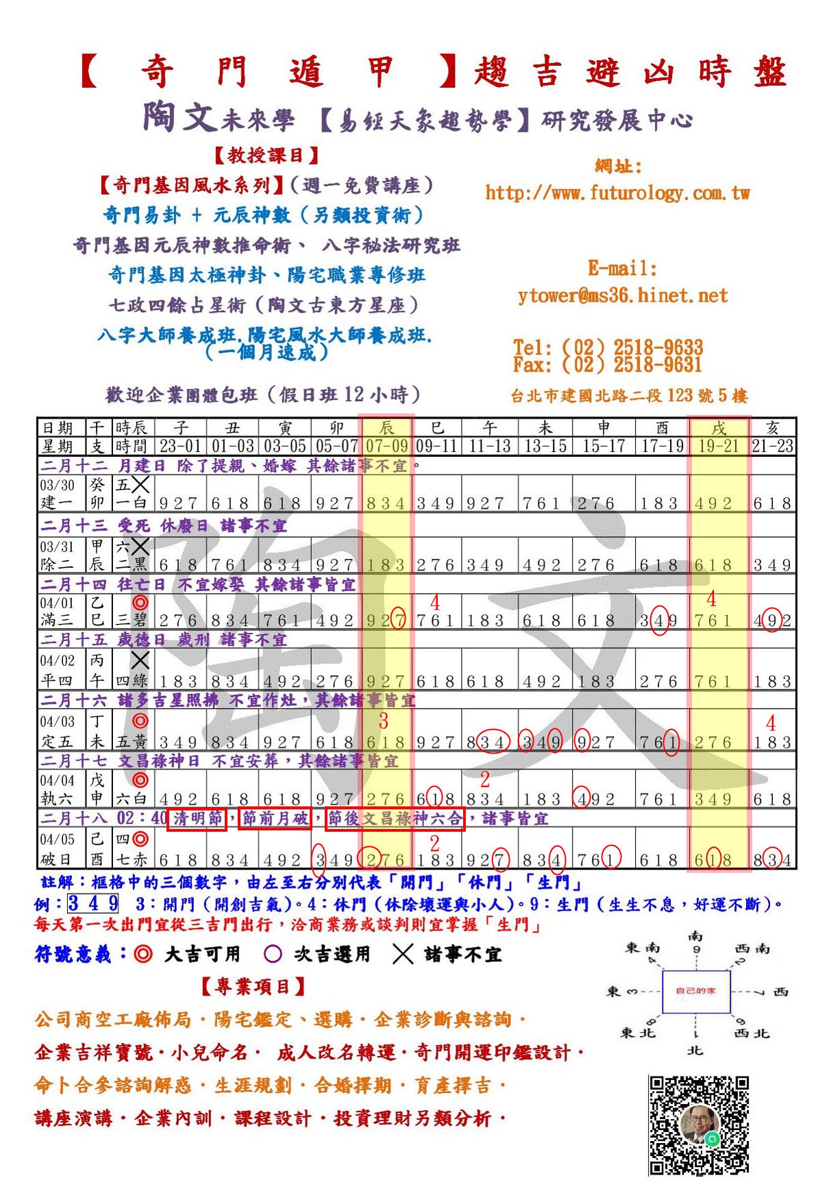 其餘時間的運用與風水開運布局,請自行參考「陶文未來學官網」【奇門遁甲】時盤。